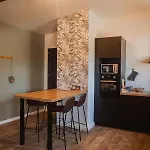Az apartman teljesen felszerelt konyhát kínál mosogatógéppel és sütővel.